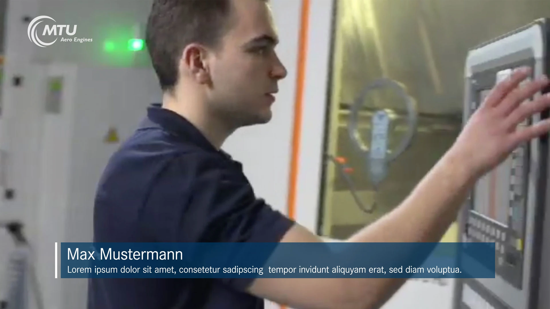 in ÜberarbeitungAudiovisuelle Elemente stellen bestimmte, immer wiederkehrende Bestandteile innerhalb der Filmsequenz dar. Sie sind für die MTU einheitlich gestaltet. Durch ihr übergreifendes Design sorgen sie für eine Einbindung des Films in die Welt der MTU.