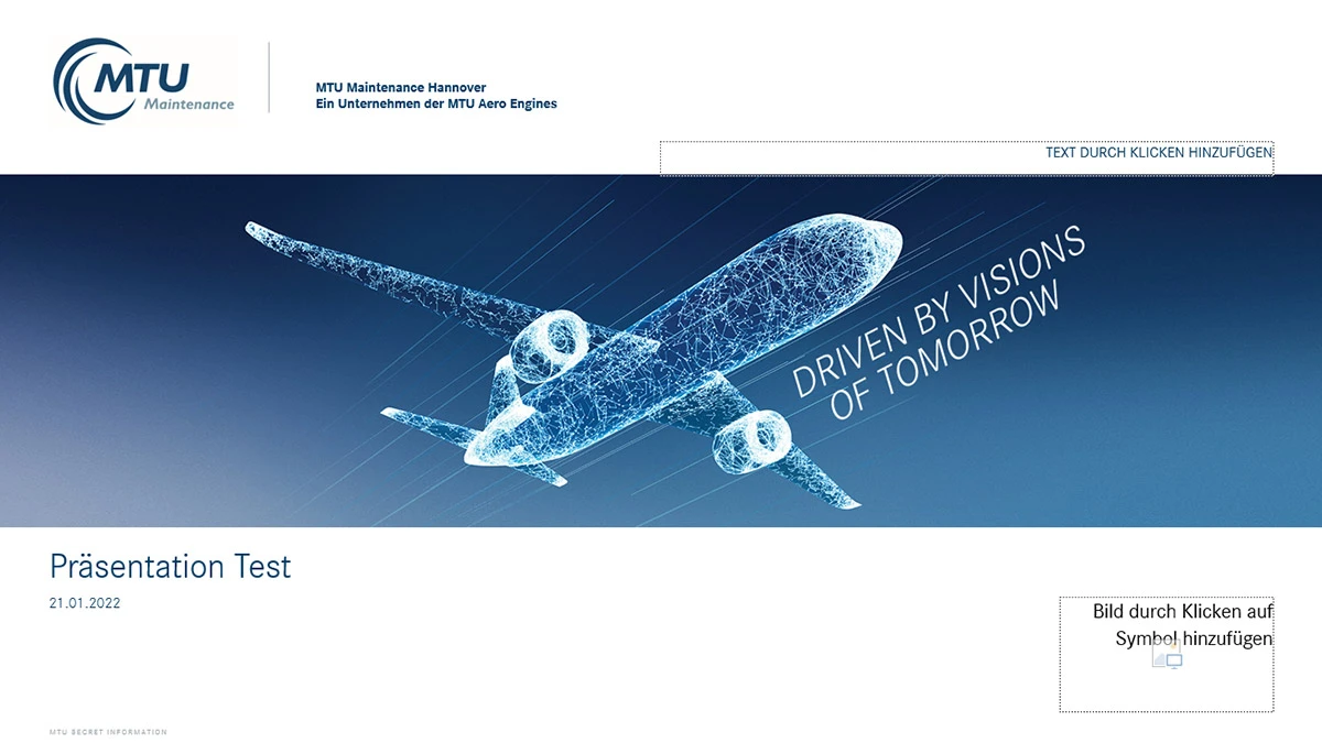 Der Präsentations-Assistent ist ein wesentlicher Bestandteil der MTU-Vorlagen im Rahmen des Corporate Designs der MTU und muss bei den Präsentationen sowohl nach außen als auch nach innen angewendet werden. So wird ein einheitliches Erscheinungsbild der MTU sichergestellt.