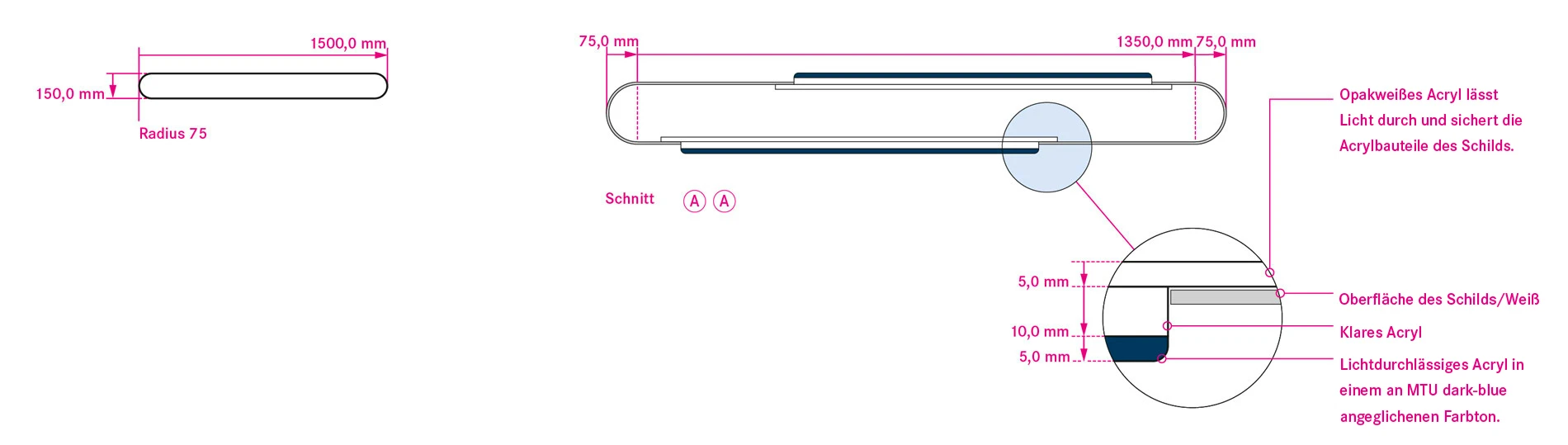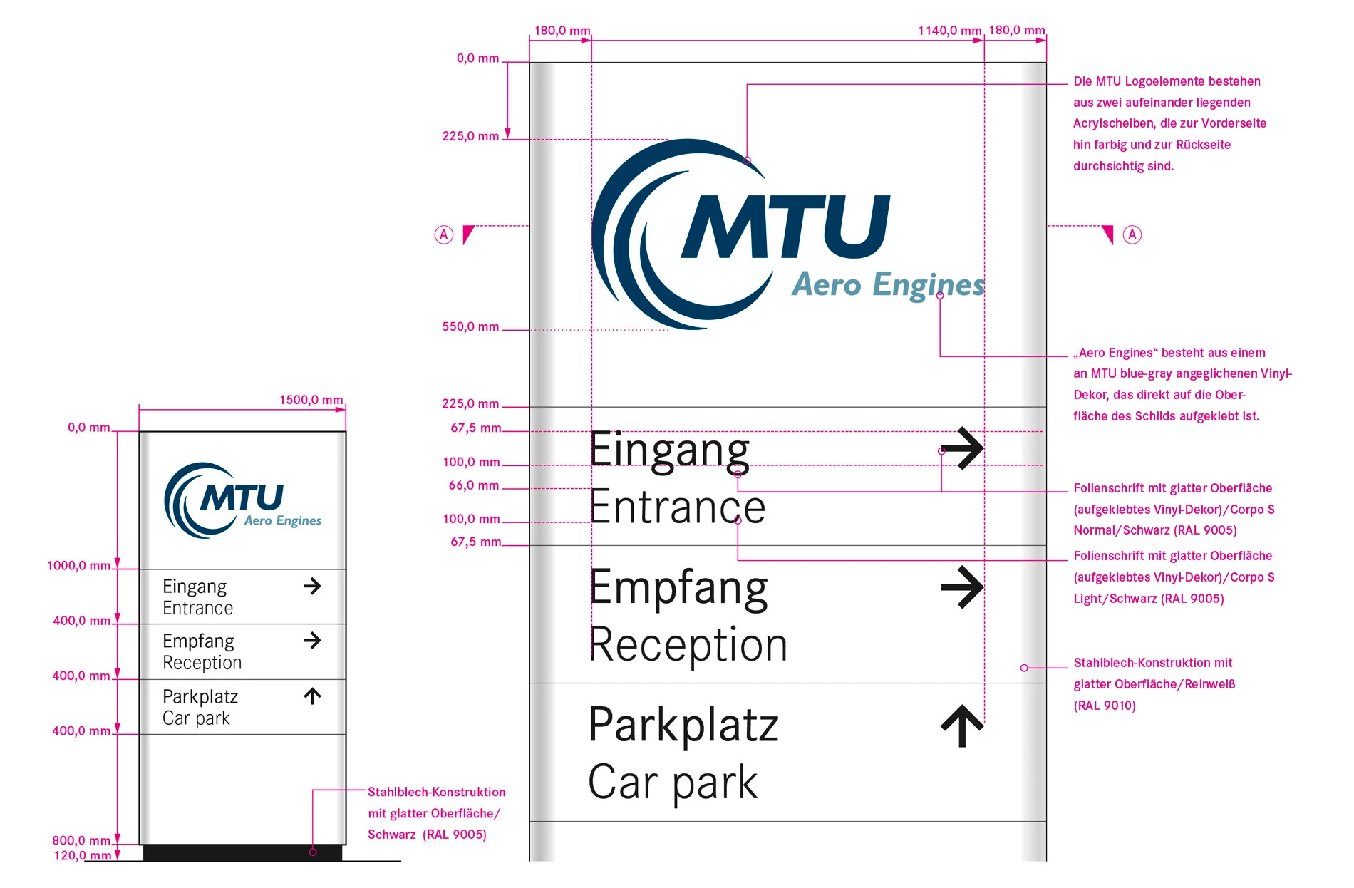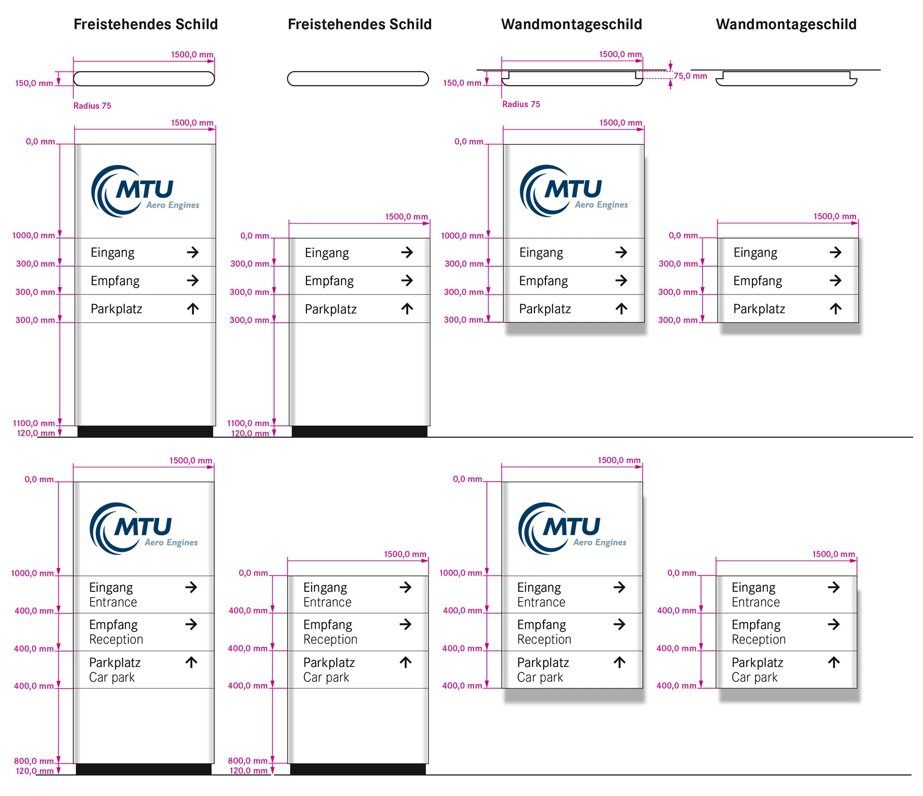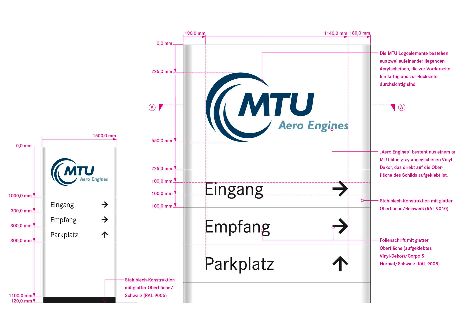 Auf diesen Identifikationsschildern erscheint nur unsere Bild-/Wortmarke, die Bezeichnung des Geschäftsfelds entfällt. Die Verwendung des Logos auf diese Weise ist ausschließlich für die hier beschriebenen MTU-Schilder zugelassen.