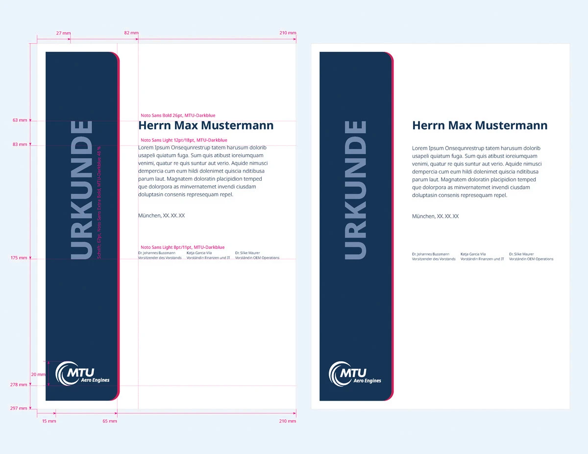 | Titel Überschrift 1-spaltig | Noto Sans Regular | 165 pt Laufweite 0 | linksbündig | MTU Darkblue |