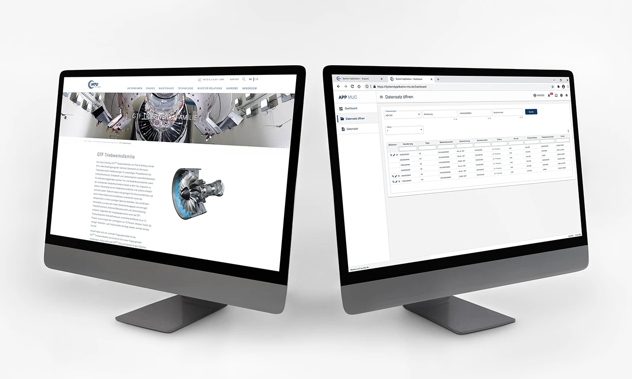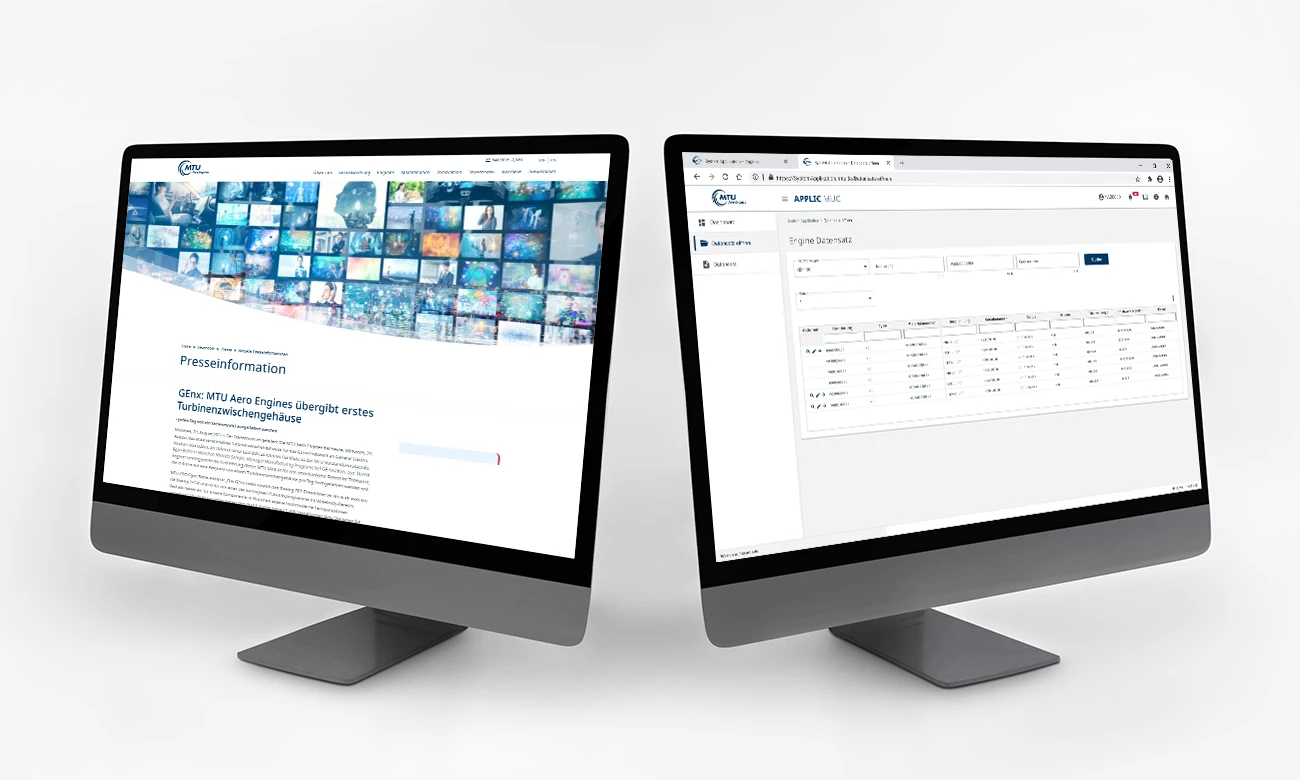 Das stringente Gesamtbild der Marke MTU muss sich natürlich auch im Online-Kontext widerspiegeln. Grundsätzlich ist das Erscheinungsbild durch den großzügigen Einsatz von Weißraum geprägt.