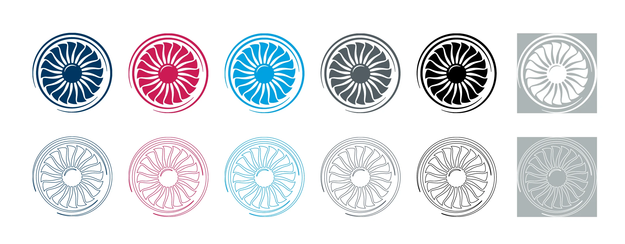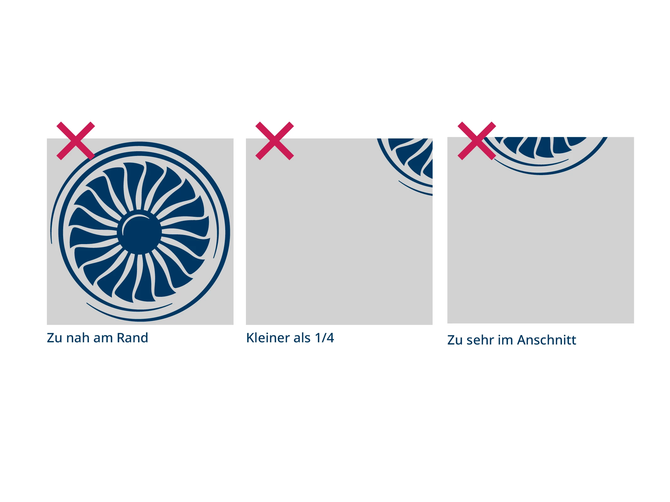 Skalierung: Der Fan kann in unterschiedlichen Größen verwendet werden, sollte jedoch nicht kleiner als eine definierte Minimalgröße dargestellt werden, um Details und erkennbare Merkmale zu bewahren.