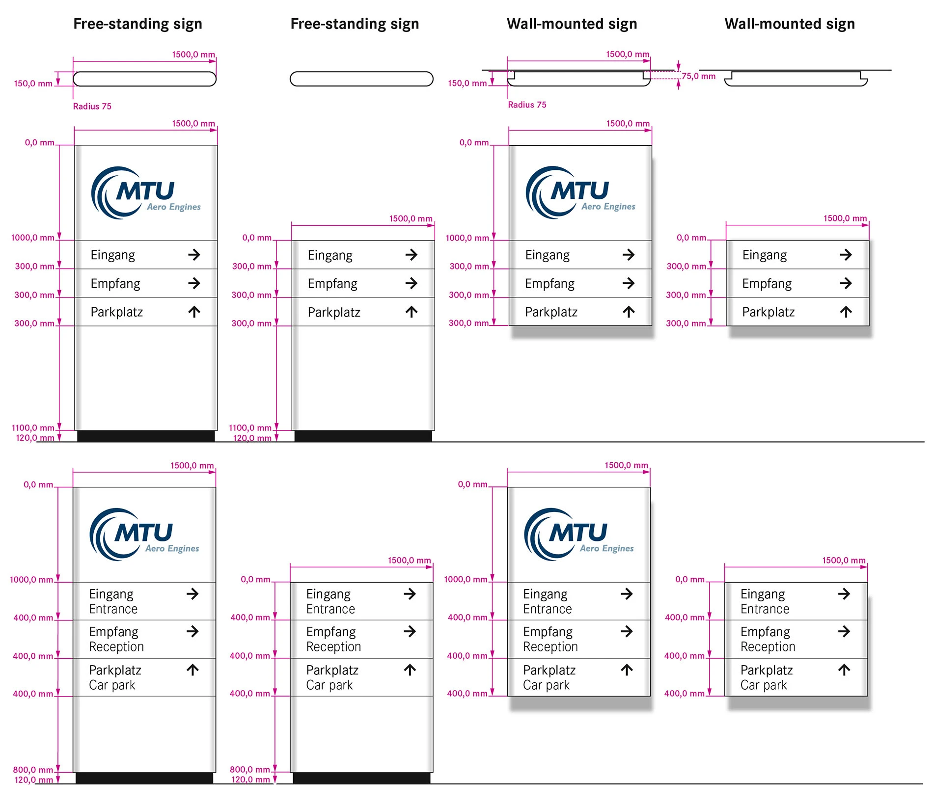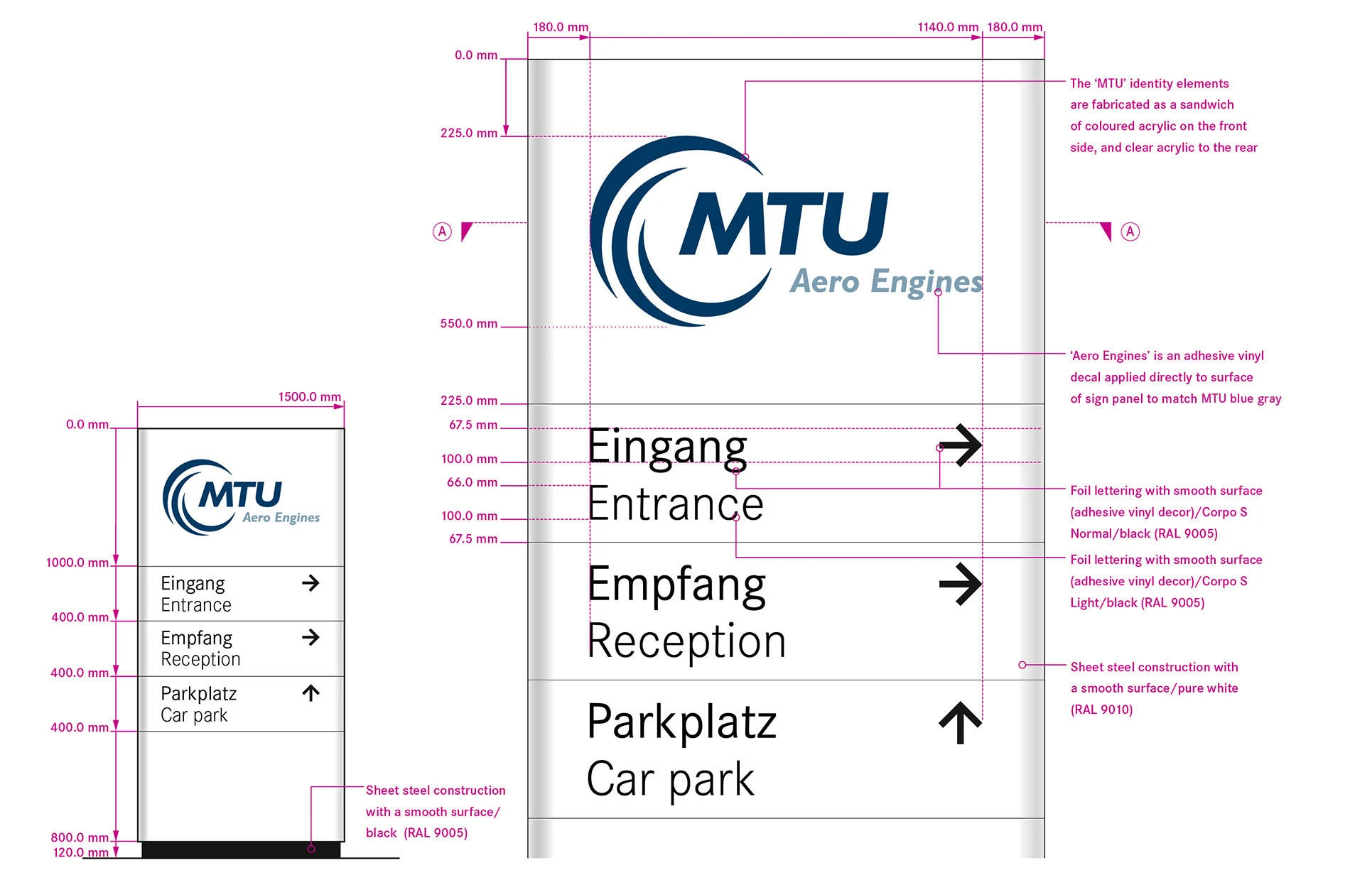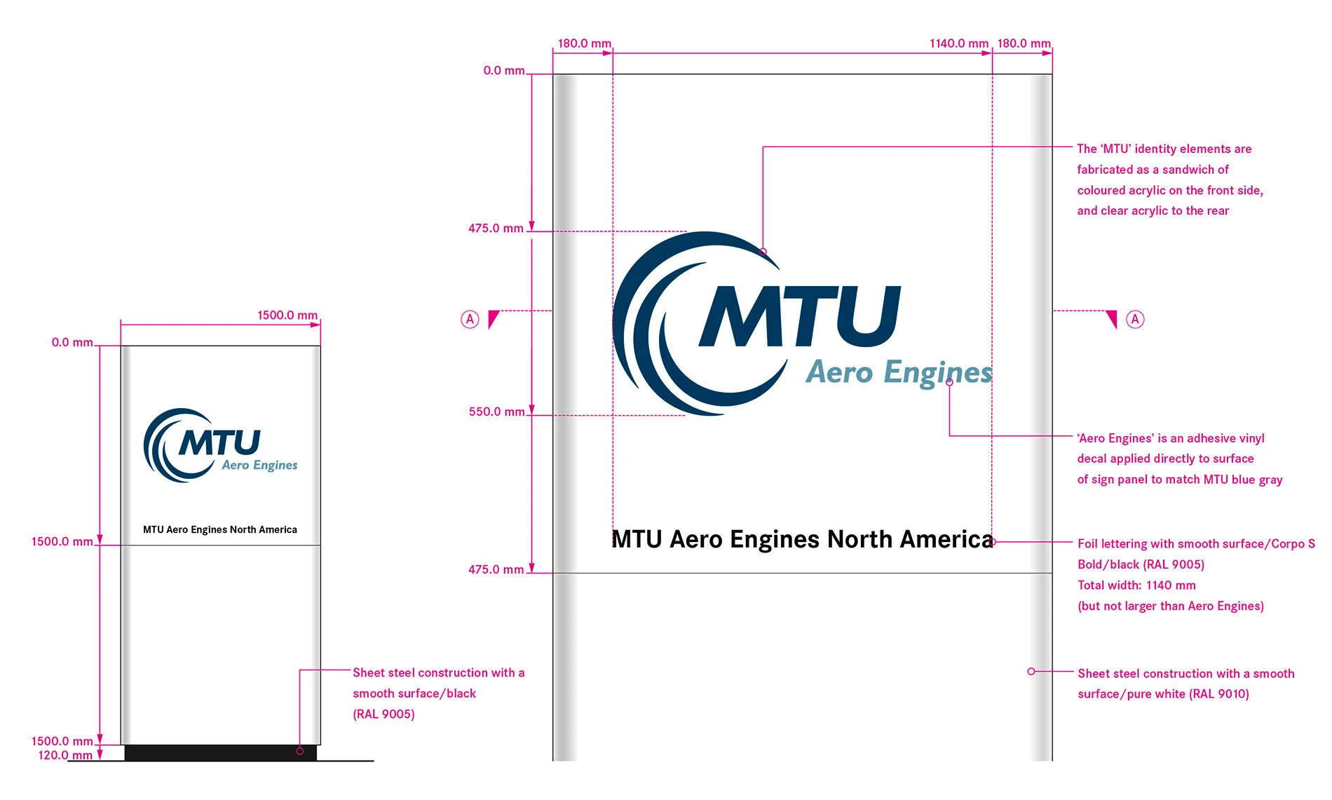 This type of identification sign uses only our symbol and brand name. The business descriptor does not appear. This is an exceptional usage of the logo and confined exclusively to this type of MTU sign.
